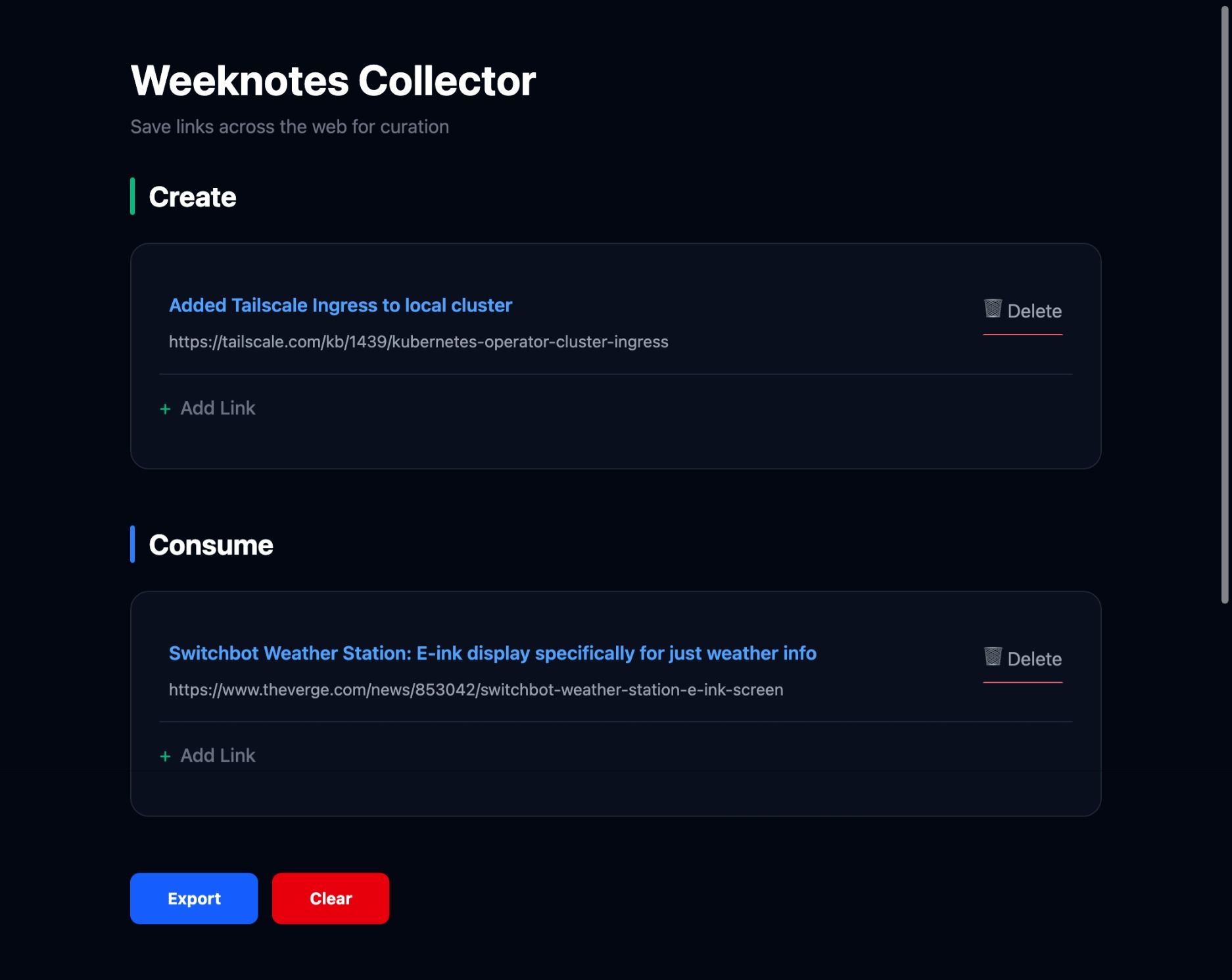 A project I worked on over the holidays to be able to collect links to post on my weeknotes each week